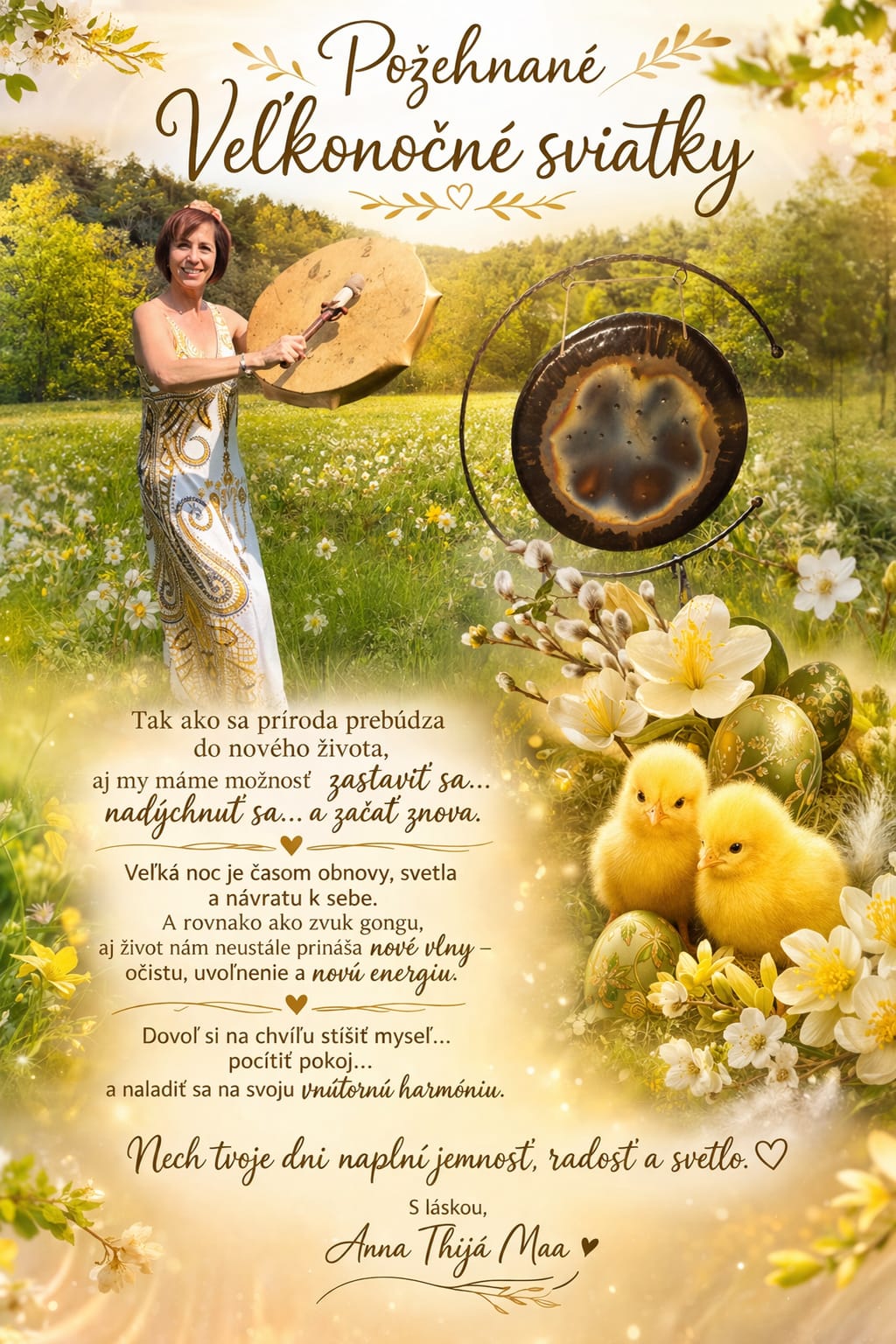 Liečivé zvukové vlny a vibrácie nádherných gongov prechádzajú celým tvojim telom. Zvukové vlny uvoľňujú hlboké napätie, očisťujú emócie, harmonizujú energetické centrá zvané ako čakry, prečistia a odbúravajú to negatívne v nás, podnecujú samoliečebné procesy v tele. Prechádzajú každou bunkou tvojho tela. Dodajú Ti odvahu, silu, vieru, pokoj duši a radosť v srdci. Vibrácie zvukov vedia uzdraviť a prebudiť tvoje telo i dušu a otvoriť tvoje srdce.